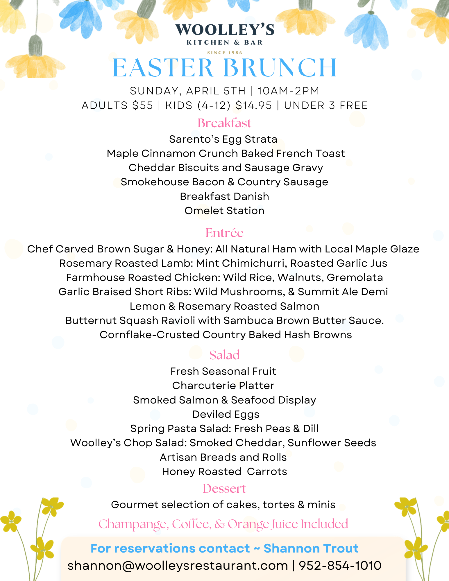 Since 1986, Woolley’s Kitchen + Bar (formerly Woolley’s Steakhouse) has been known for mouth-watering steaks, fresh fish, seafood, and outstanding service. Our food embodies classic American cuisine at its finest. The dinner menu specializes in fresh & local selections like premium certified Angus beef & chops, fresh fish & seafood, pasta, and poultry.